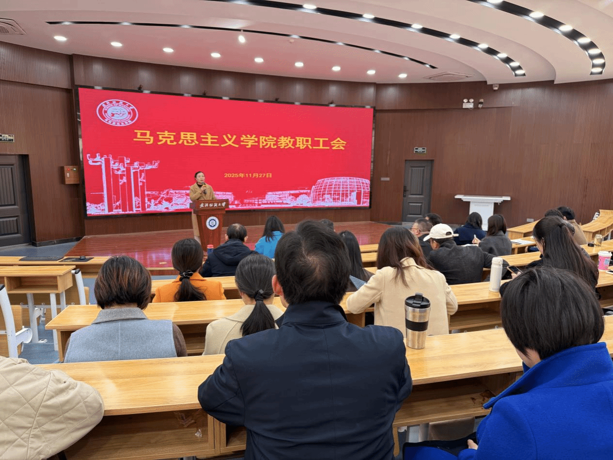 11月27日下午,武汉纺织大学马克思主义学院召开十一月全体教职工会议。会议紧密围绕深化政治理论学习、贯彻落实党中央最新精神以及扎实推进学院各项重点工作展开,旨在统一思想、凝聚共识、明确任务,推动学院事业高质量发展。