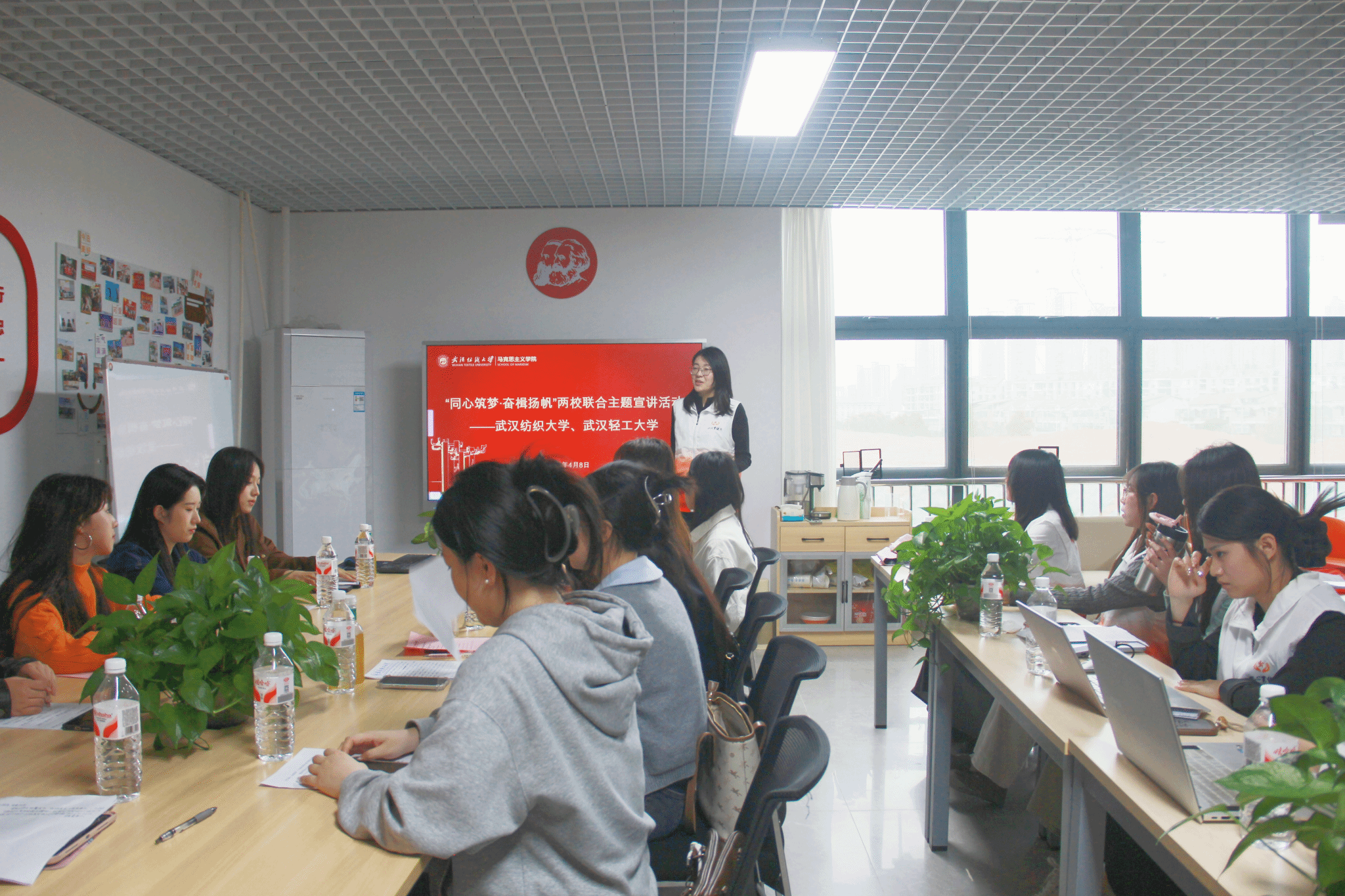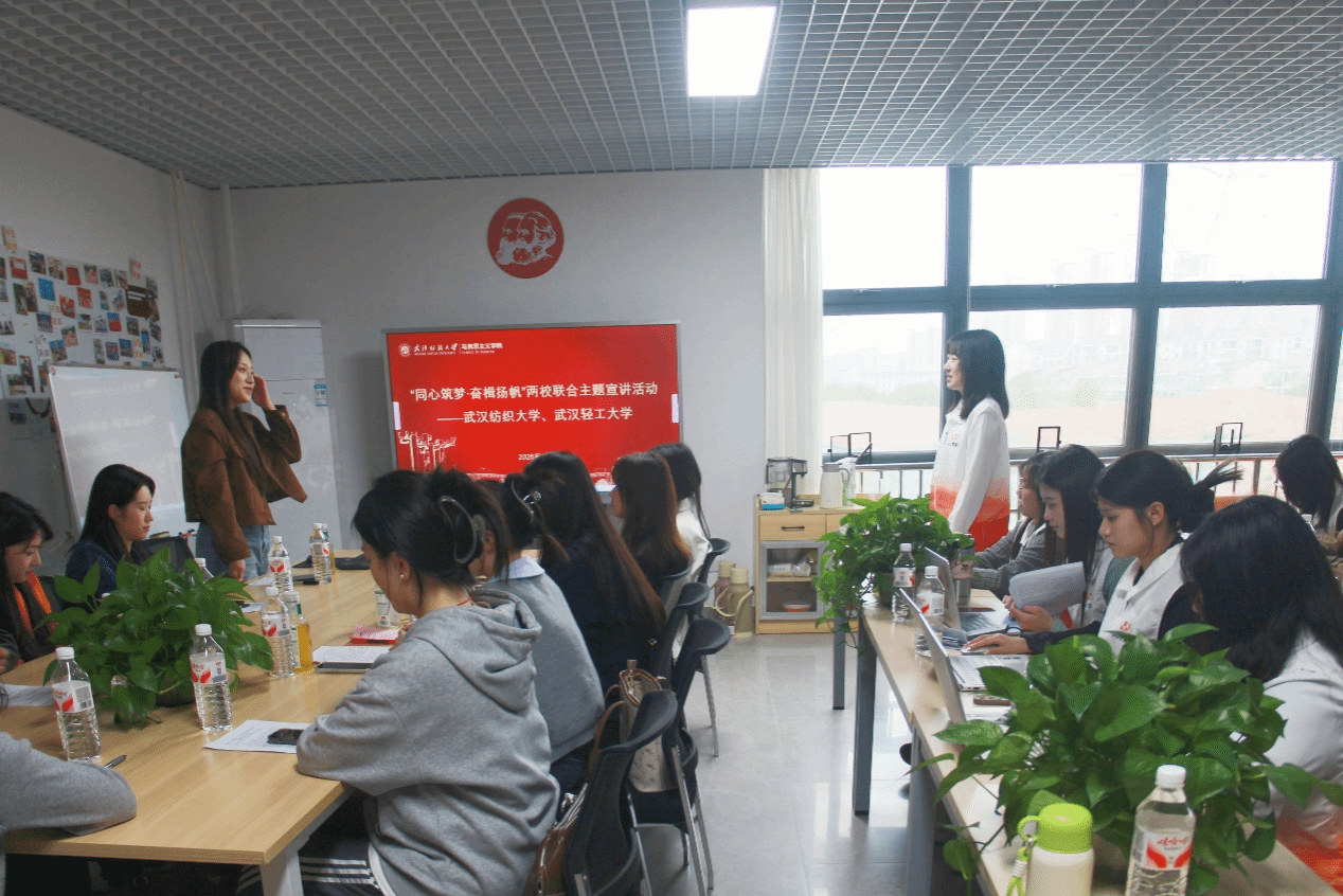 为深化校际交流、凝聚青年力量,4月8日下午,武汉纺织大学与武汉轻工大学两校马克思主义学院研究生会在阳光校区15栋学生公寓“一站式”党建共享社区开展“同心筑梦・奋楫扬帆”联合主题宣讲活动。两校马院研究生会成员齐聚一堂,以理论宣讲促思想共鸣,以交流互鉴共促成长。武汉纺织大学马克思主义学院“初心”宣讲团学生骨干梁爽主持活动。