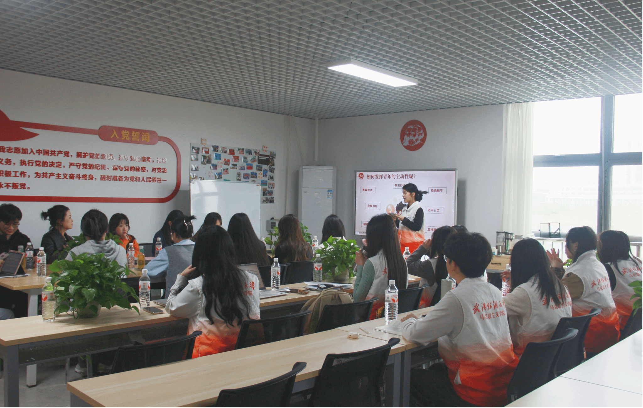 主题宣讲环节。学校马院学生李念等立足青年视角,鼓励同学们打破束缚、勇于试错,在实践中绽放青春光彩;蔡雨萌等带领大家重温习近平总书记七年知青岁月,感悟初心使命,汲取信仰力量。武汉轻工大学马院学生邴晓涵深入解读两会精神与“以旧换新”政策,阐释政策背后的时代价值与青年责任;颜欣然用翔实数据与鲜活案例,展现国家以人民为中心的发展思想,让两会精神可感可触。