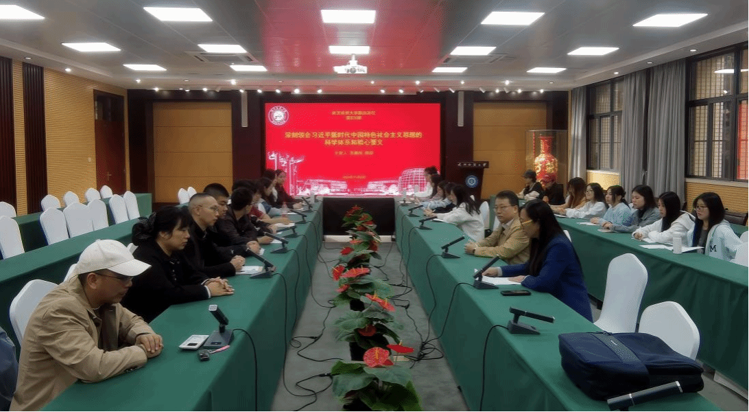 2025年11月6日下午,武汉纺织大学第875期阳光论坛在阳光校区行政楼115会议室成功举办。本次论坛特邀华中师范大学马克思主义学院李敬煊教授担任主讲嘉宾,以《深刻领会习近平新时代中国特色社会主义思想的科学体系和核心要义》为主题,围绕习近平新时代中国特色社会主义思想产生的时代背景、生成方法、时代命题、主要内容、活的灵魂及历史地位等展开深度探讨。讲座由马克思主义学院副院长刘艳教授主持,马克思主义学院党的建设和马克思主义中国化研究两个学科方向全体教师和研究生参加讲座。