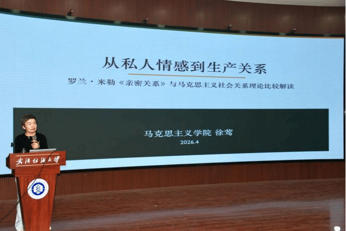 4月10日上午,马克思主义学院2026年第3期研究生论坛在阳光校区03-T201思政课虚拟仿真研究中心举办。本次论坛由学院副教授徐莺以《从私人情感到生产关系:罗兰·米勒〈亲密关系〉与马克思主义社会关系理论比较解读》为主题进行专题授课,学院全体研究生参加论坛。