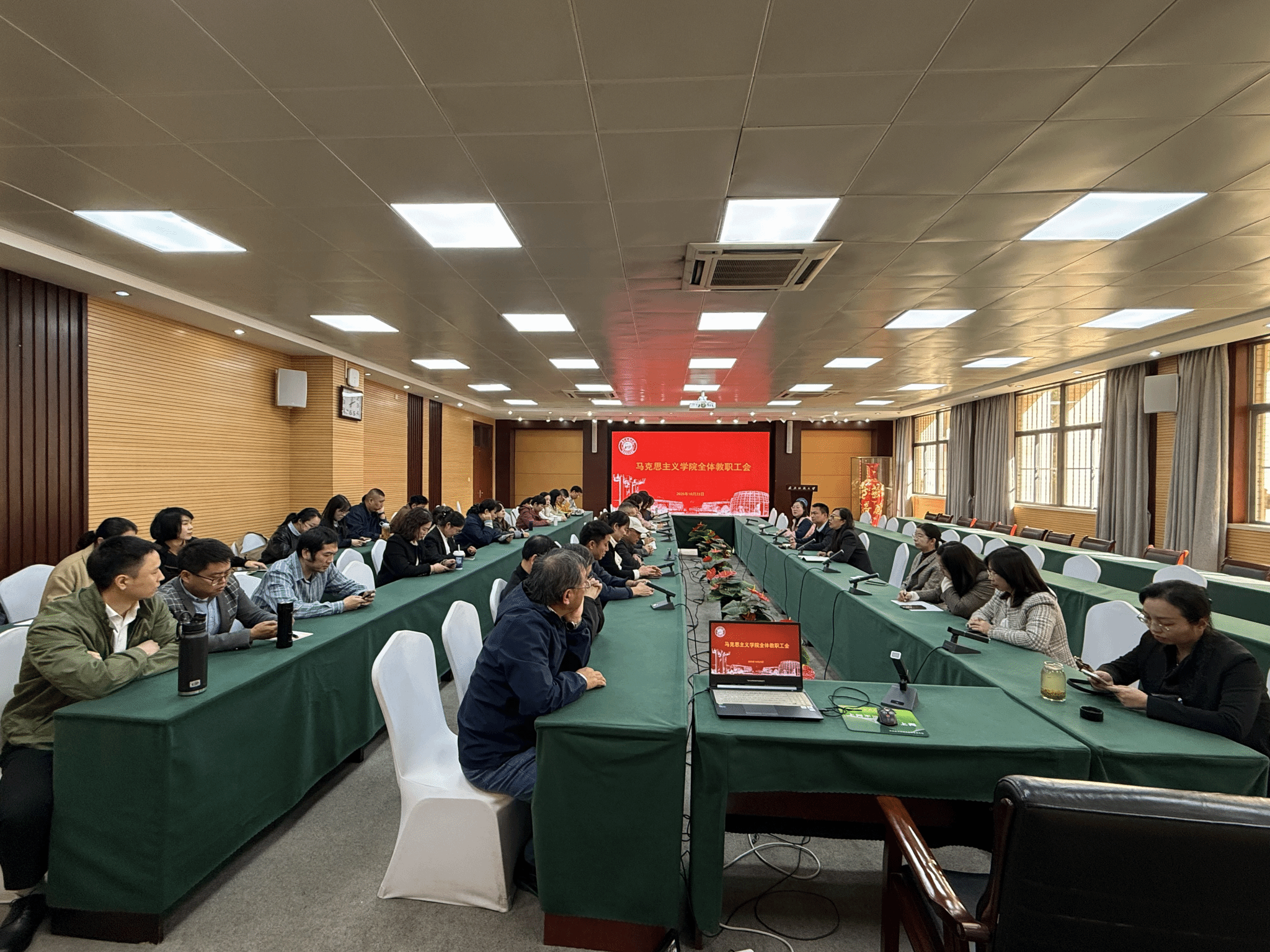 10月23日下午,马克思主义学院在行政楼115会议室召开全院教职工会,围绕教学管理、师德师风建设、学科发展及研究生培养等工作进行部署与安排。
