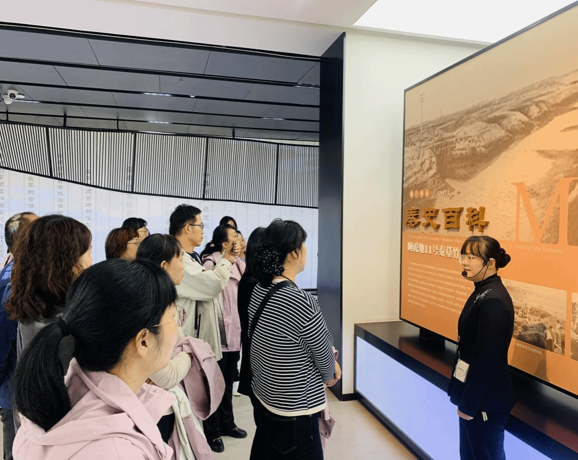在《中国秦代简牍文物》展区,秦代竹简、“中华第一长文觚” 等珍贵文物引发党员教师们的热烈讨论。秦代竹简记录了秦代的法律条文、行政文书与民间契约,字迹清晰、内容详实,不仅是研究秦代制度史的重要史料,更让老师们深刻体会到“法治”理念在中华历史中的悠久传承;“中华第一长文觚” 作为我国目前发现的最长秦代木觚,其上镌刻的文字涉及礼仪、政令等内容,其形制与文字风格展现了秦代文化的统一性与规范性。参观过程中,博物馆讲解员结合史料背景,详细解读了文物背后的历史故事与文化内涵,党员教师们不时驻足交流,围绕“中华优秀传统文化的当代价值”“马克思主义与中华优秀传统文化相结合的实践路径”等话题展开研讨,有党员表示:“我们不仅实地感受了云梦地区深厚的历史文化底蕴,思政课教学也有了鲜活的‘本土文化素材’,秦代简牍中的法治思想、东汉陶楼体现的民生智慧,都是中华优秀传统文化的重要组成部分,将这些内容融入《马克思主义基本原理》《习近平新时代中国特色社会主义思想概论》等课程教学,能让思政课更有温度、更具说服力。”